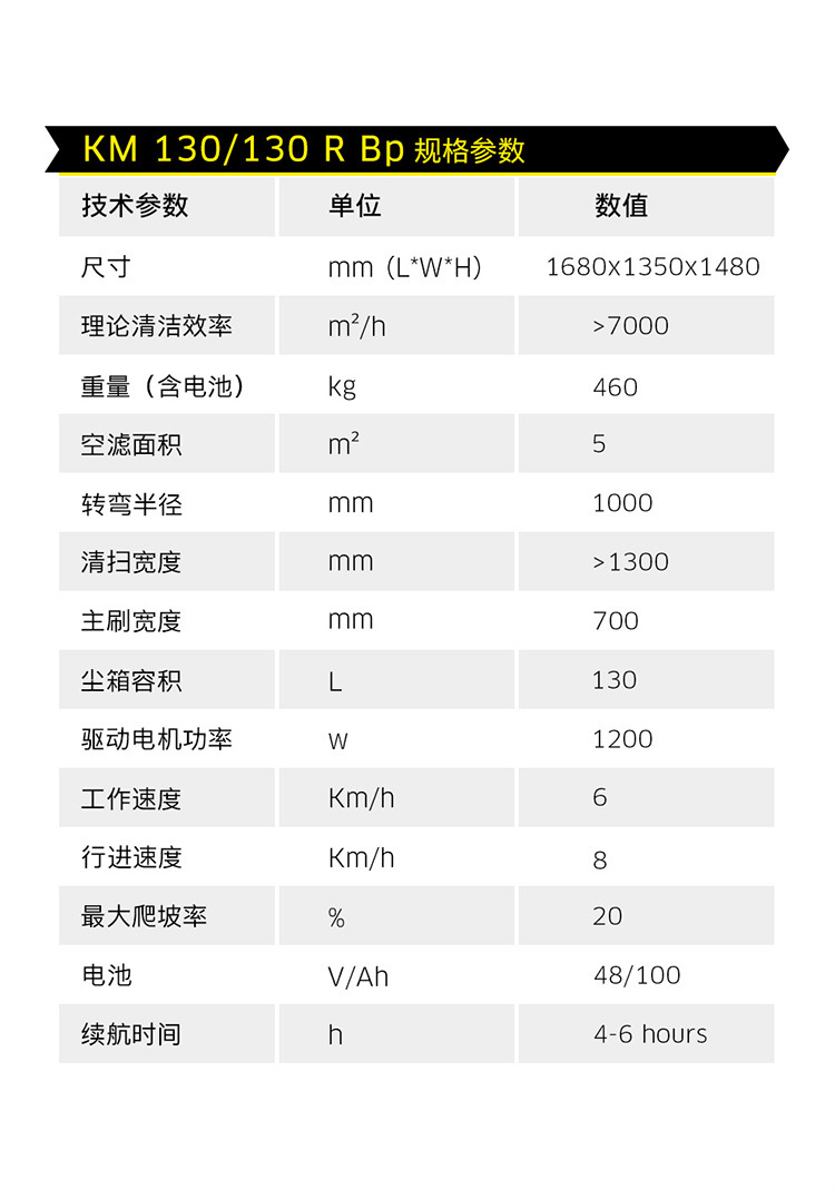 駕駛式,含2邊刷工作寬度:1300 mm,含2邊刷工作效率:10850 m2/h